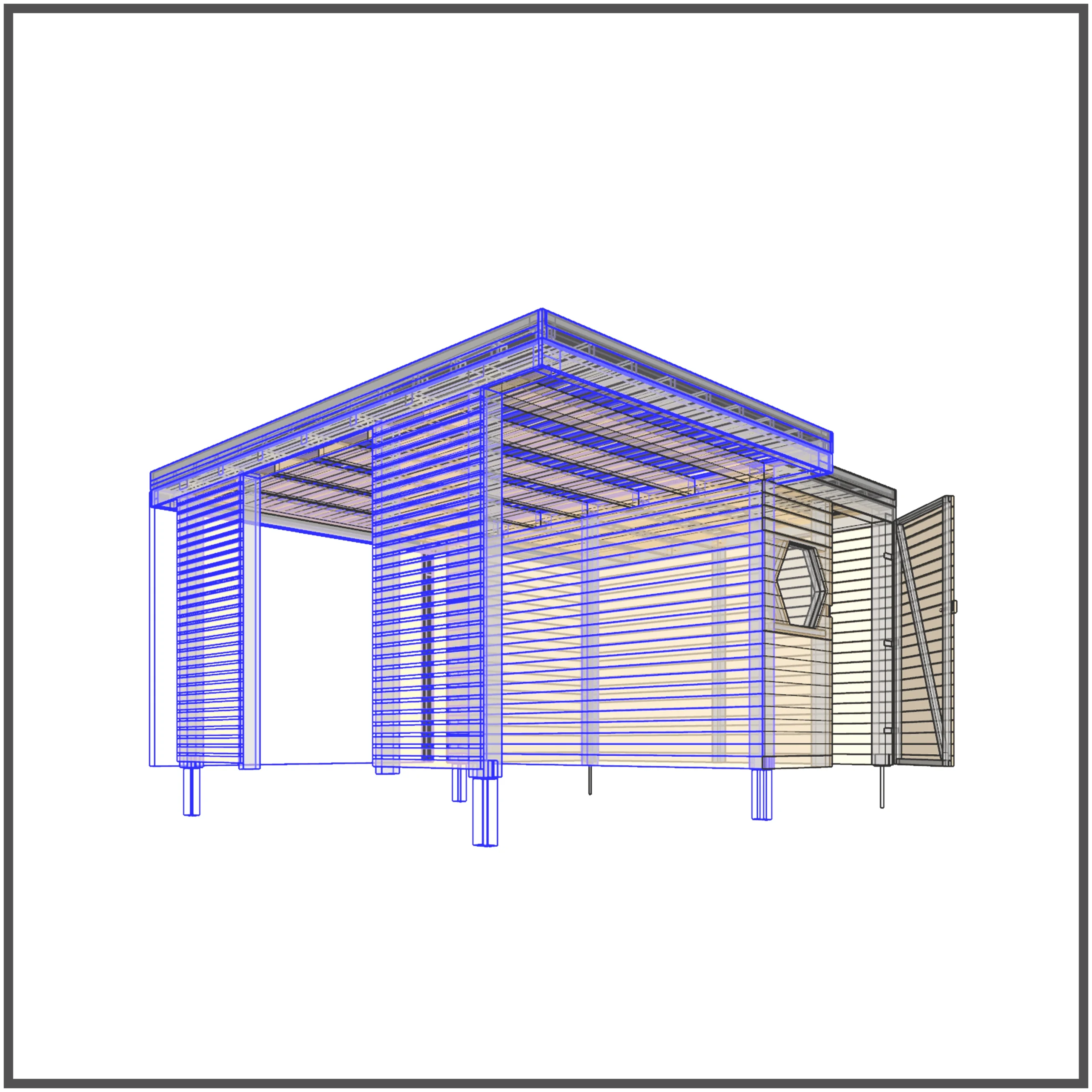 Gotowy model 3D carportu z domkiem – plik SKP do SketchUp